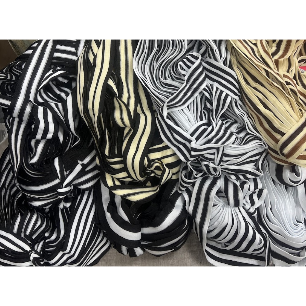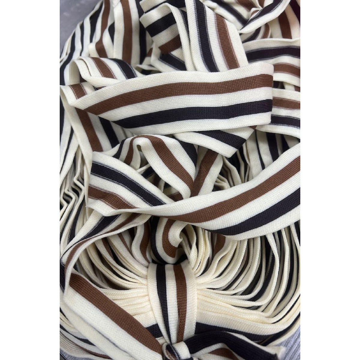 Лампасна тасьма 4 см молочний з коричневою і чорною смужкою 50 м у бобіні