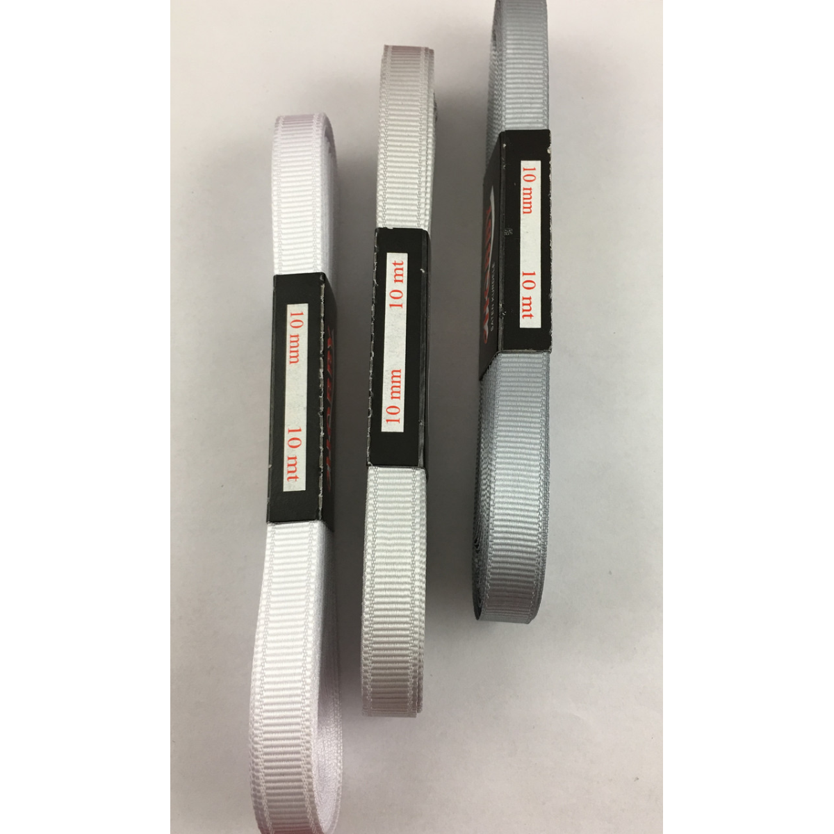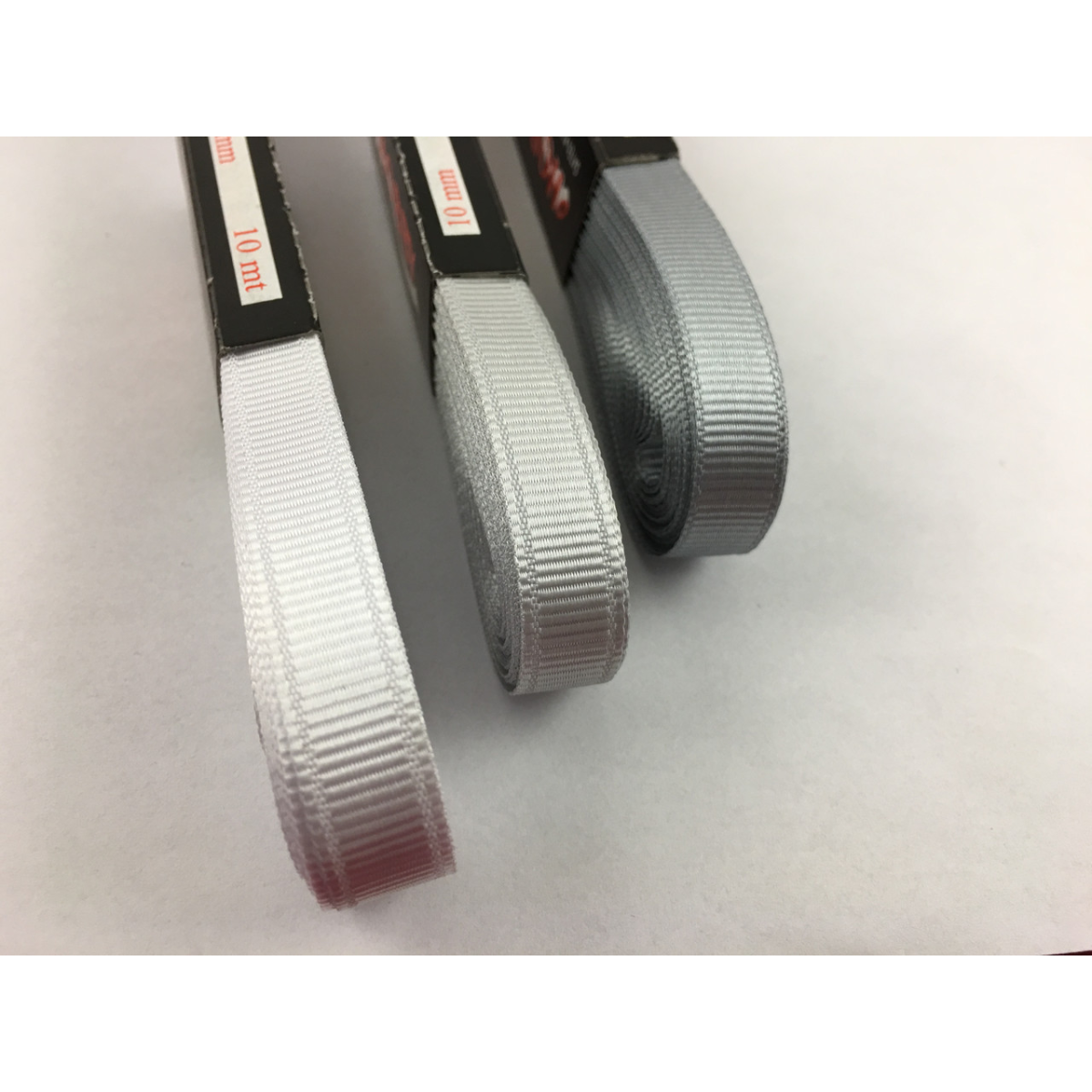 Репсова стрічка 10 мм білого та сірого кольору